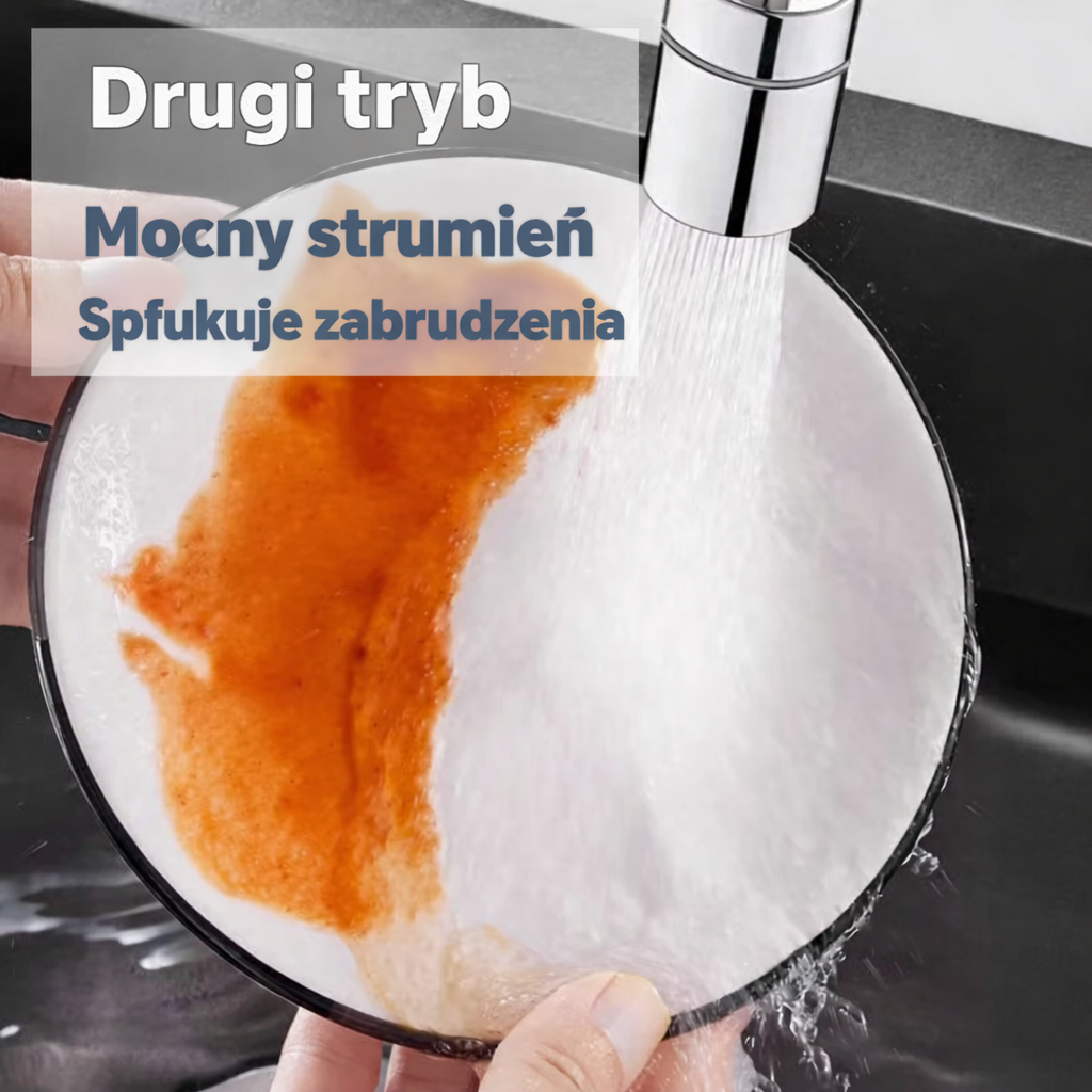 Funkcja obrotu 720° pozwala ustawić strumień wody w dowolnym kierunku. Ułatwia to mycie rąk, płukanie zlewu czy czyszczenie naczyń. Nie musisz już ustawiać wszystkiego pod niewygodnym kątem — po prostu obracasz końcówkę i masz pełną kontrolę nad strumieniem.